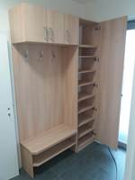 Nabízíme kompletní sestavy, ale i otevřené a uzavřené skříně, botníky a komody. Nábytek je navržený tak, aby využil celé prostoru a zároveň poskytl dostatečné úložné prostory.